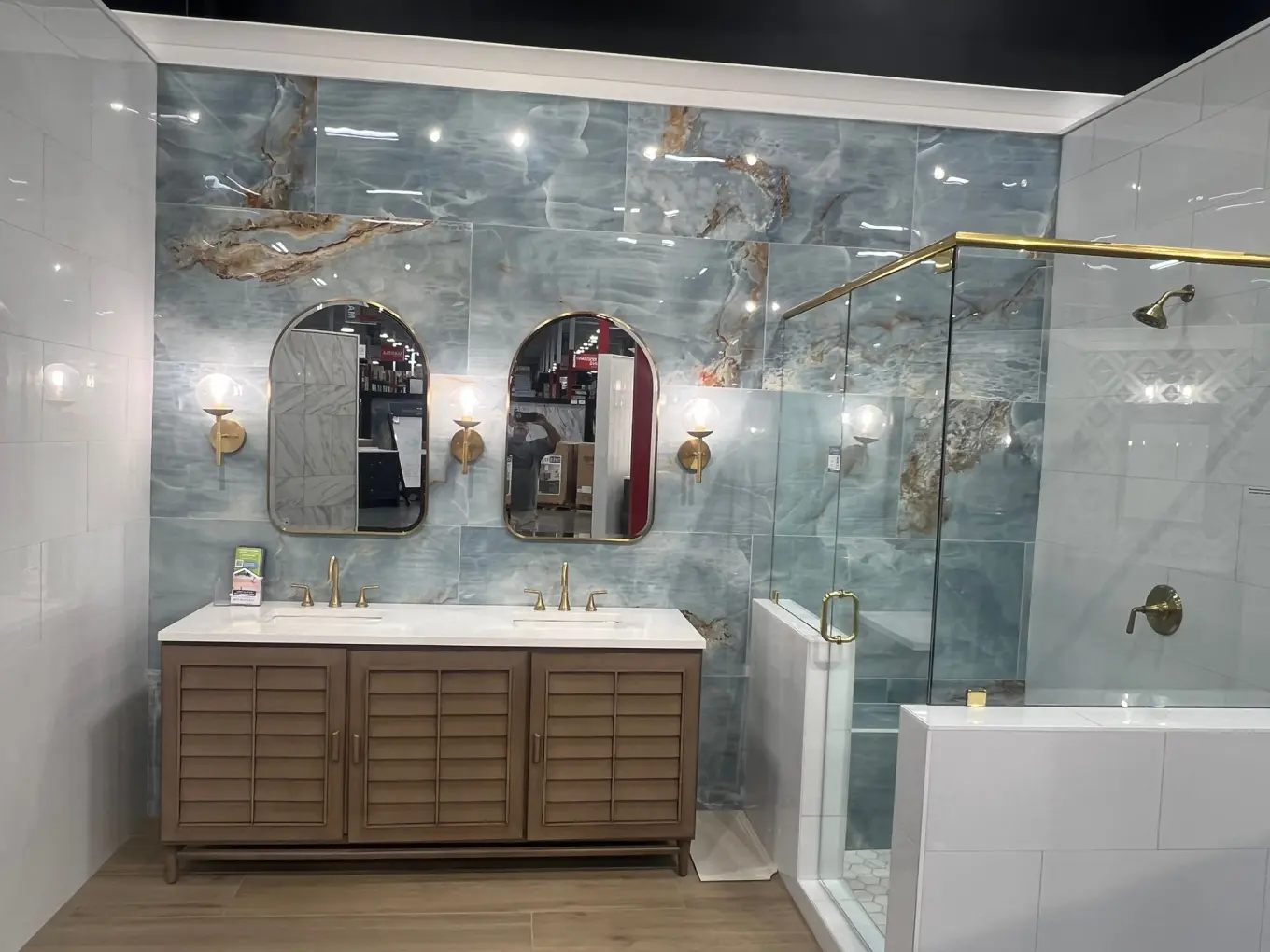 Spa-like bathroom renovation with marble accents and modern fixtures.